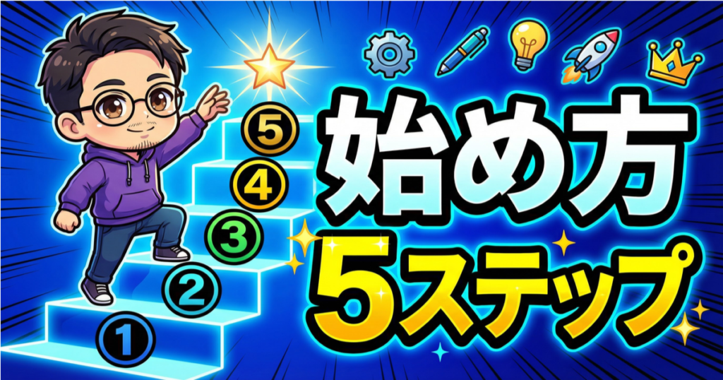 AI副業ブログは、以下の5ステップで始められます。 初期費用は月額1,000円程度、所要時間は1日あれば十分です。