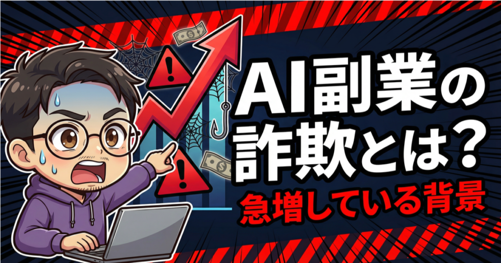 今回は、現役でAI副業を実践している僕が、AI副業詐欺のリアルな手口と、騙されないための見分け方を徹底的にお伝えします。