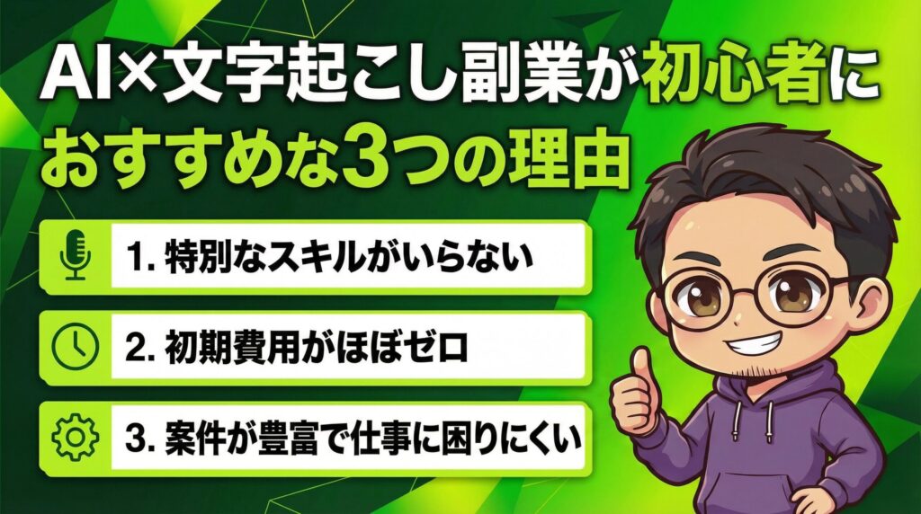 ✅ AI文字起こし副業は、スキル不要・初期費用ほぼゼロで始められる