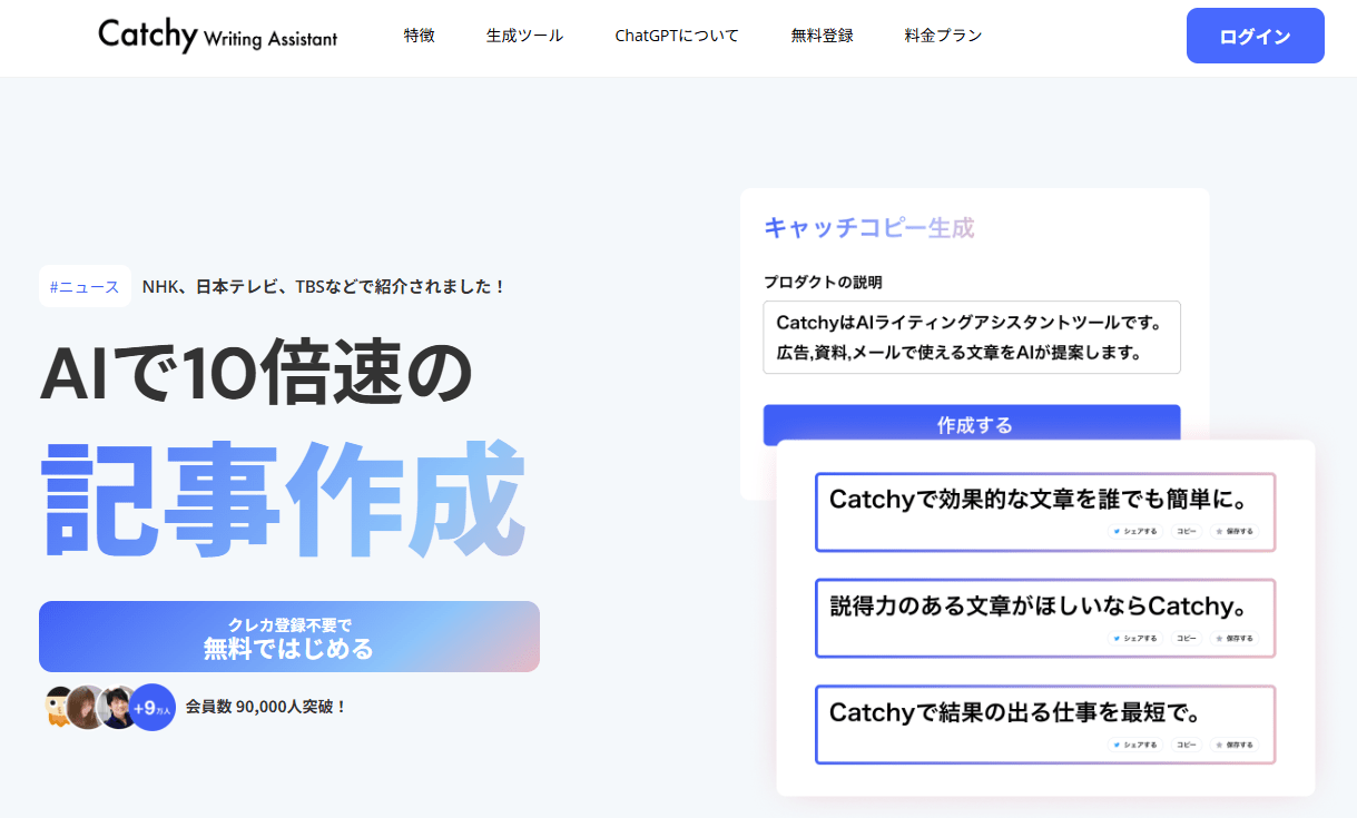 文章作成にかかる時間を従来の10分の1以下に短縮でき、ライティングスキルに関係なく高品質な文章を作成できるため、ブログ運営者、Webライター、マーケティング担当者など幅広い層に活用されています。