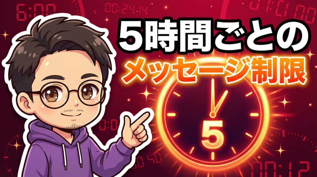 | メッセージ送信回数 | 5時間あたり約45件(目安) | 5時間ごと |
