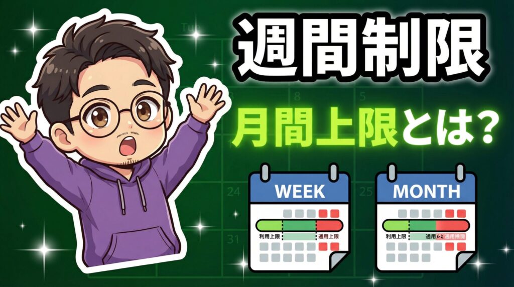 週間制限は、セッション開始から7日後にリセットされます。「制限がかかったけど急ぎの作業がある」という場合は、5時間待つのが基本的な対処法です。