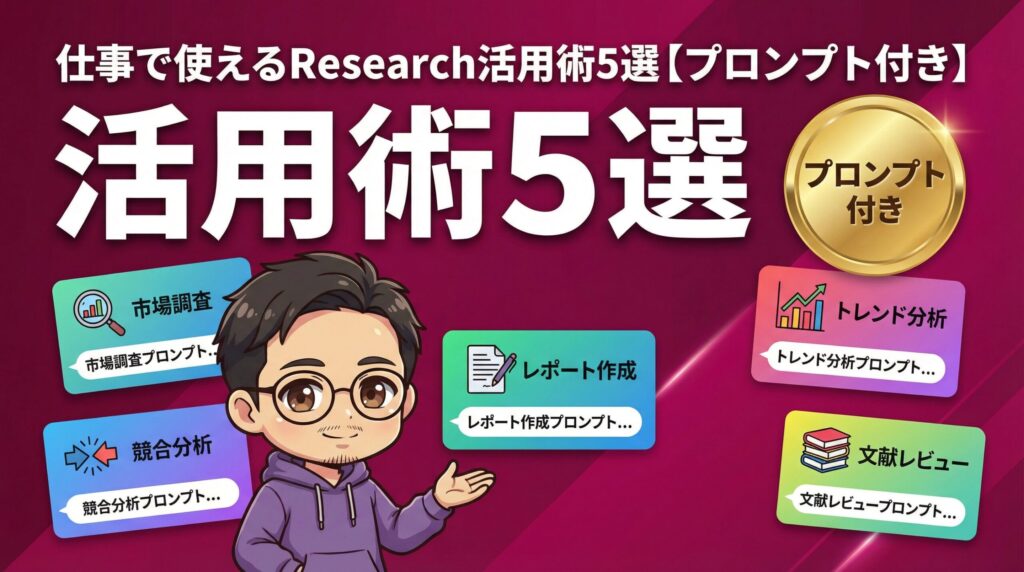 今回は、Research機能の仕組みから、僕が実際にやっている5つの活用法、ChatGPT Deep Researchとの使い分けまで解説します。