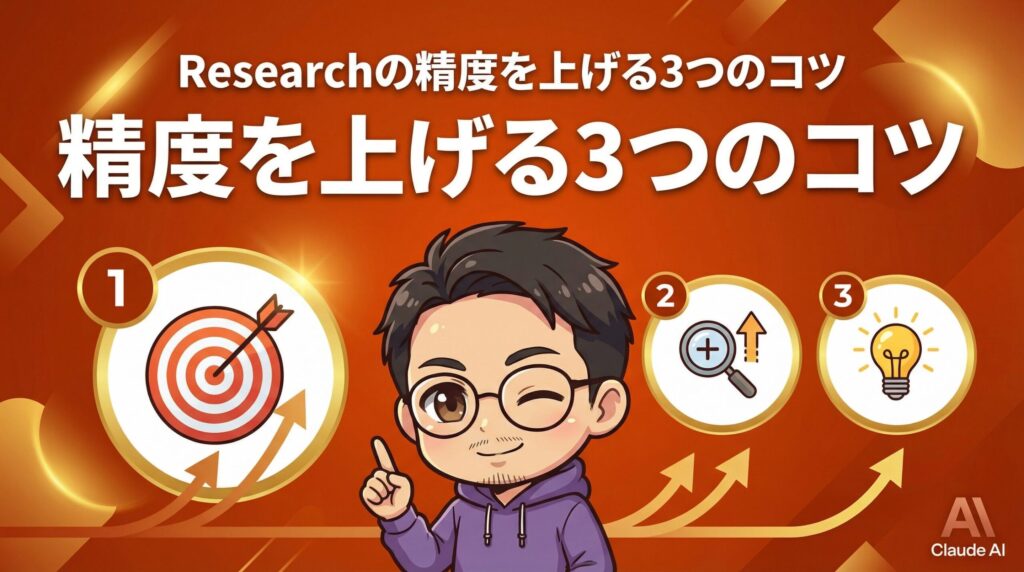 5つの活用術に共通するのは「調査の目的」「ほしい情報の項目」「出力フォーマット」を明確に指定していること。Researchはプロンプトの具体性に比例して精度が上がります。