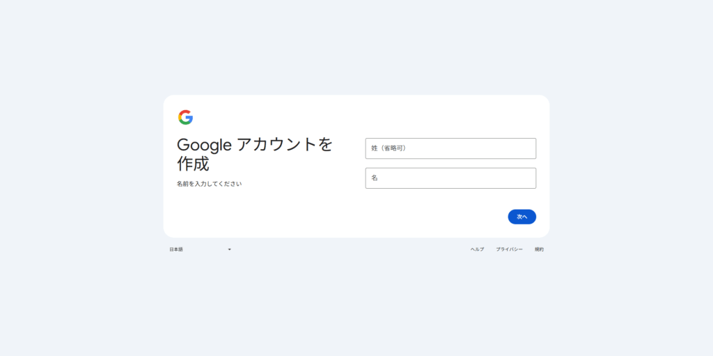 まずは、Googleアカウント作成ページにアクセスしていきましょう。
