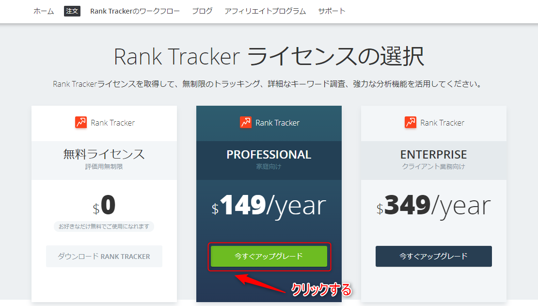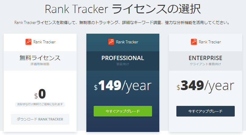 Rank Trackerには無料版と有料版があり、用途に応じて選択できます。