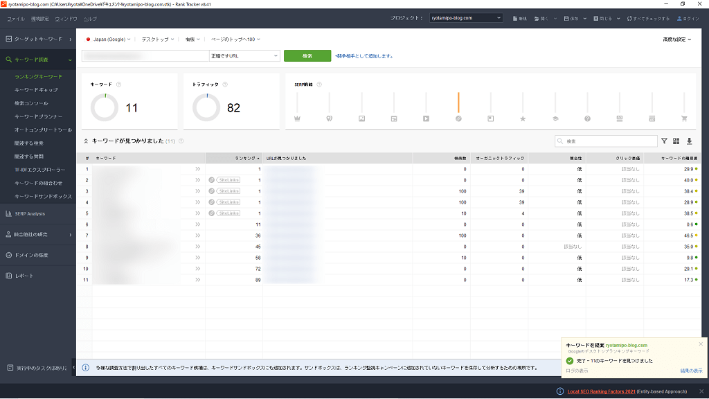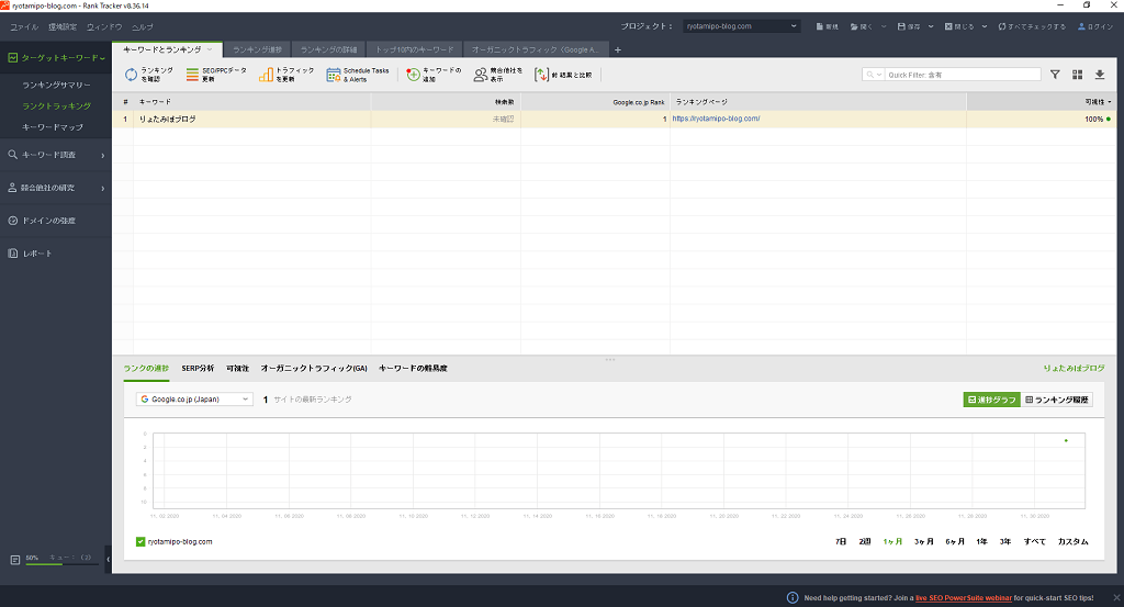 Rank Trackerは、SEOキーワードの順位を検索することができる超便利なブログツールです。