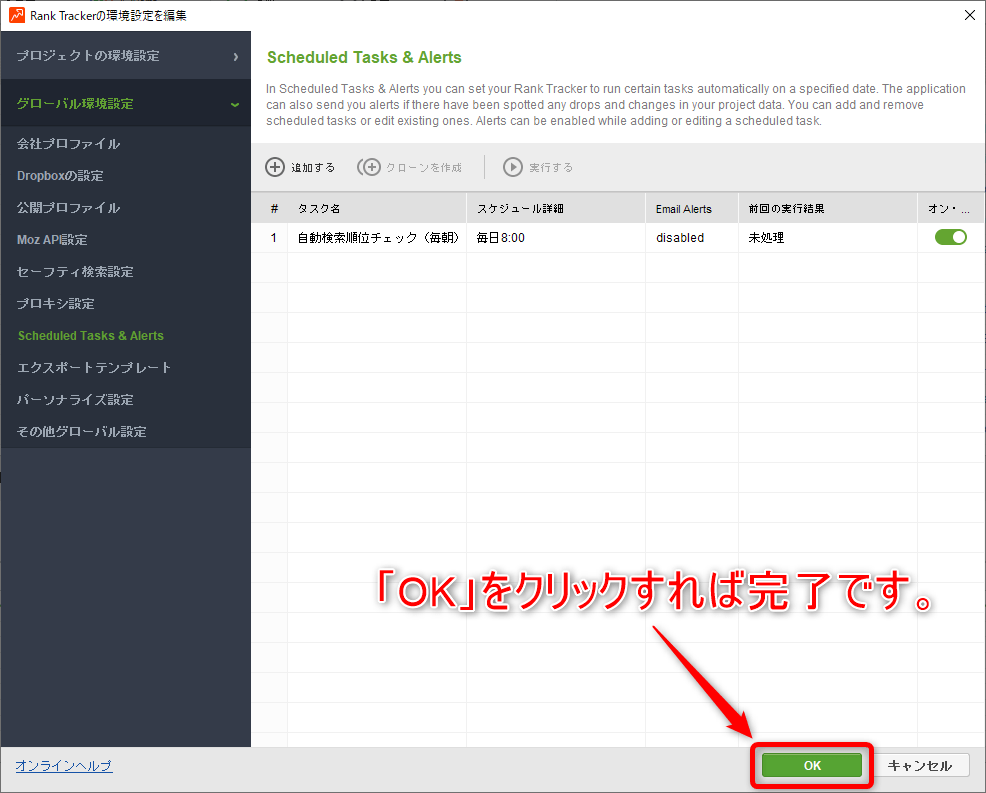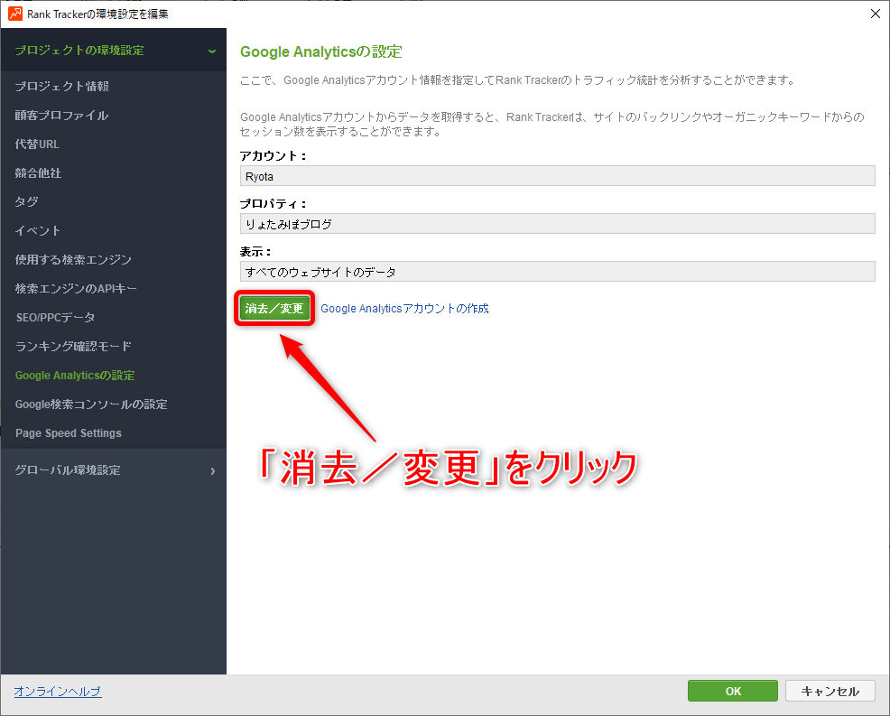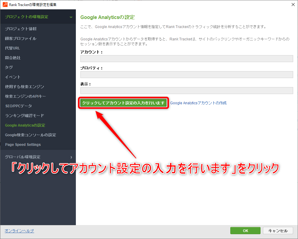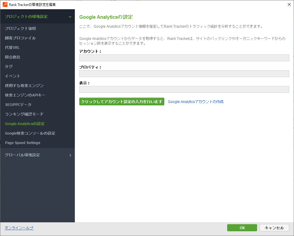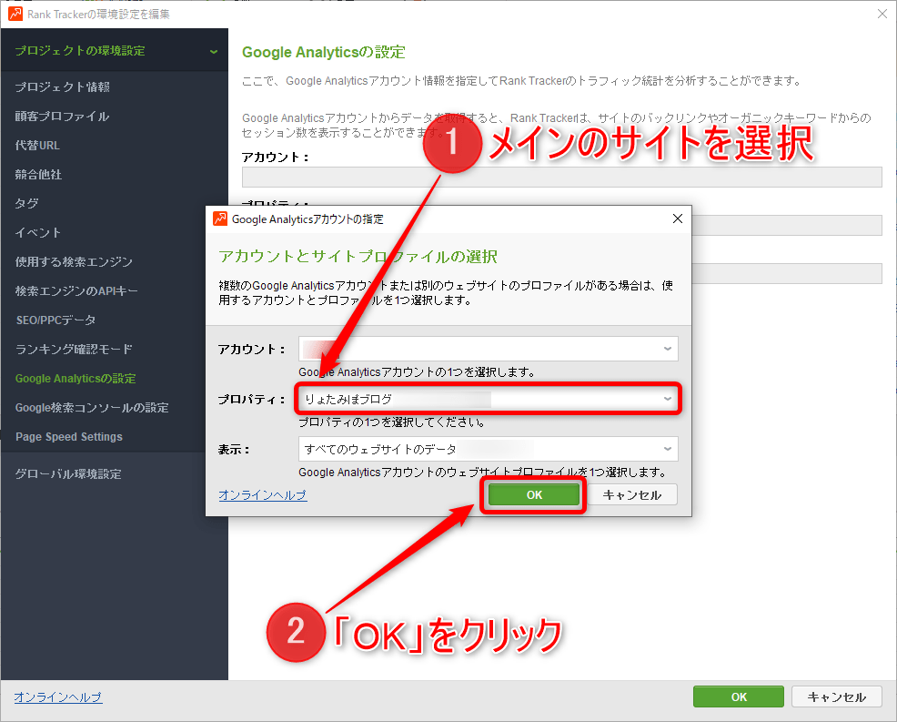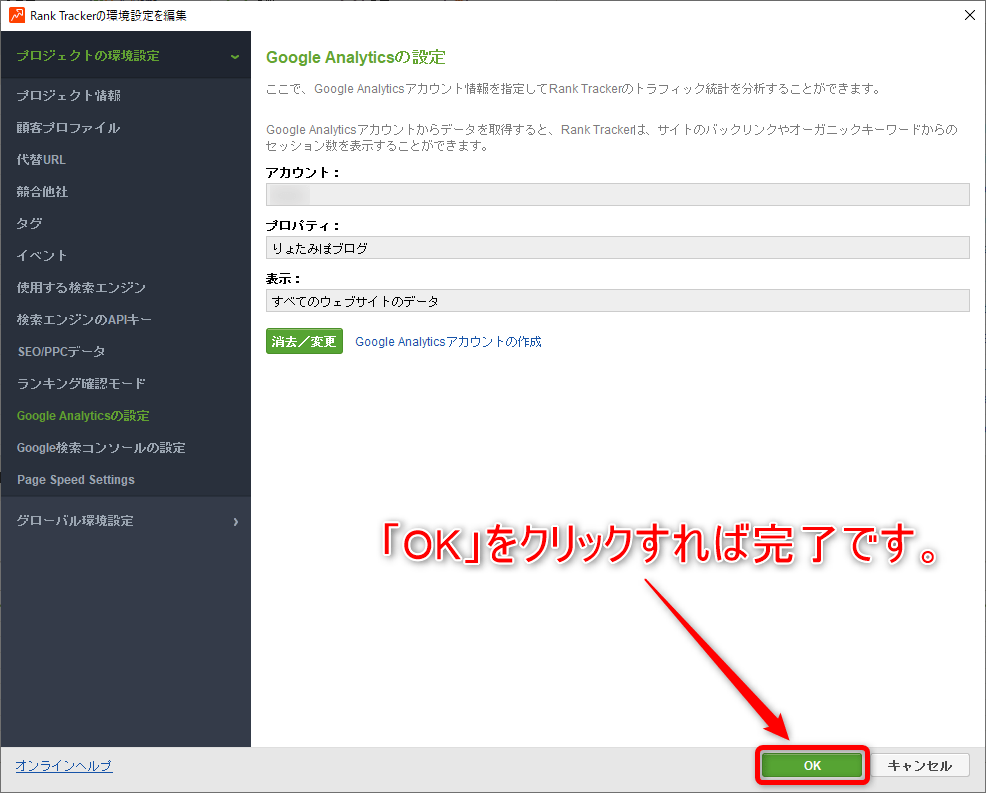 最後にもう一度「OK」をクリックすれば、Rank TrackerにGoogleアナリティクスの連携が完了です。