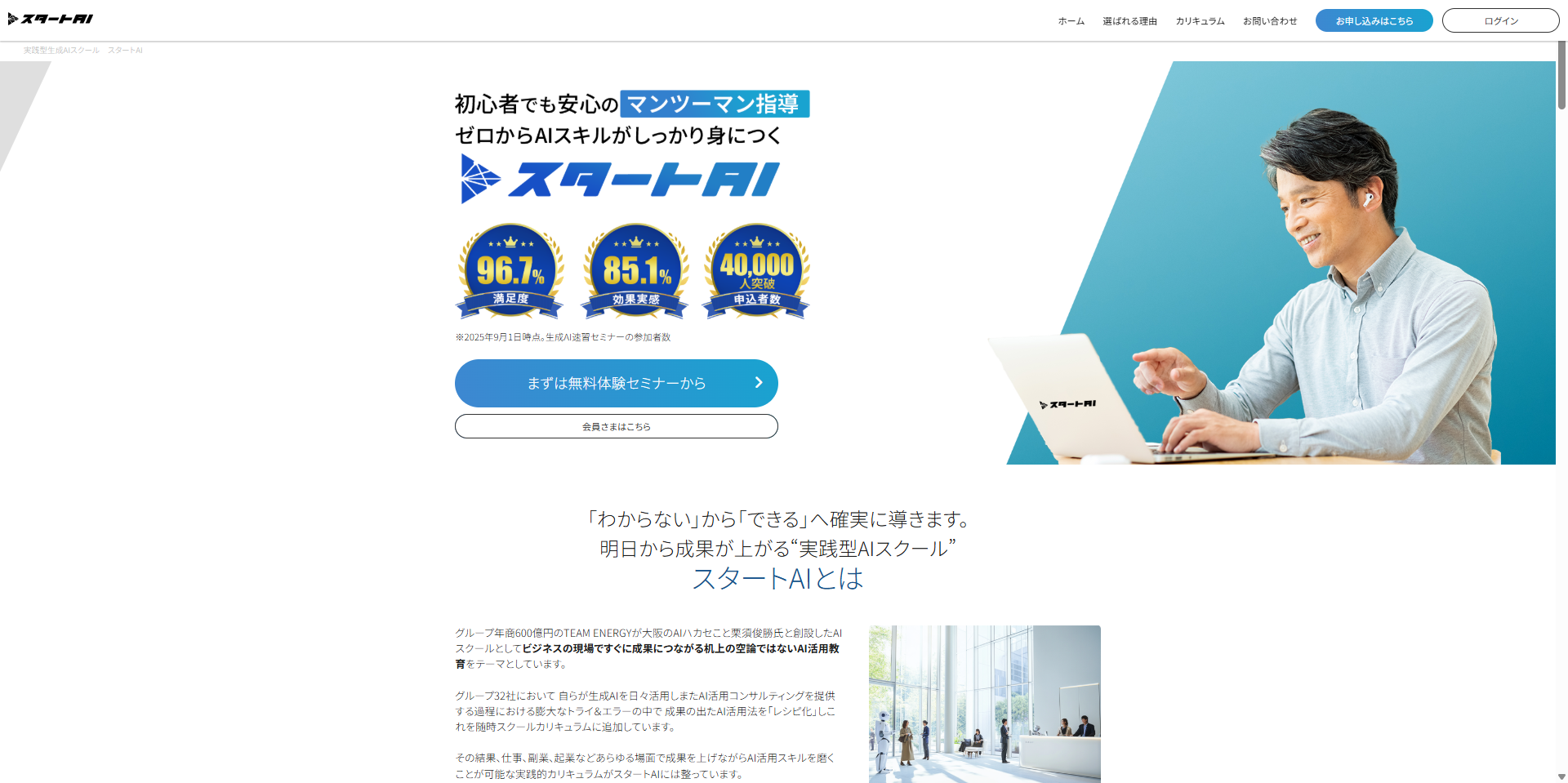 「AIを学びたいけど、独学では不安…」という方は、まずスタートAIの無料セミナーに参加してみてください。
