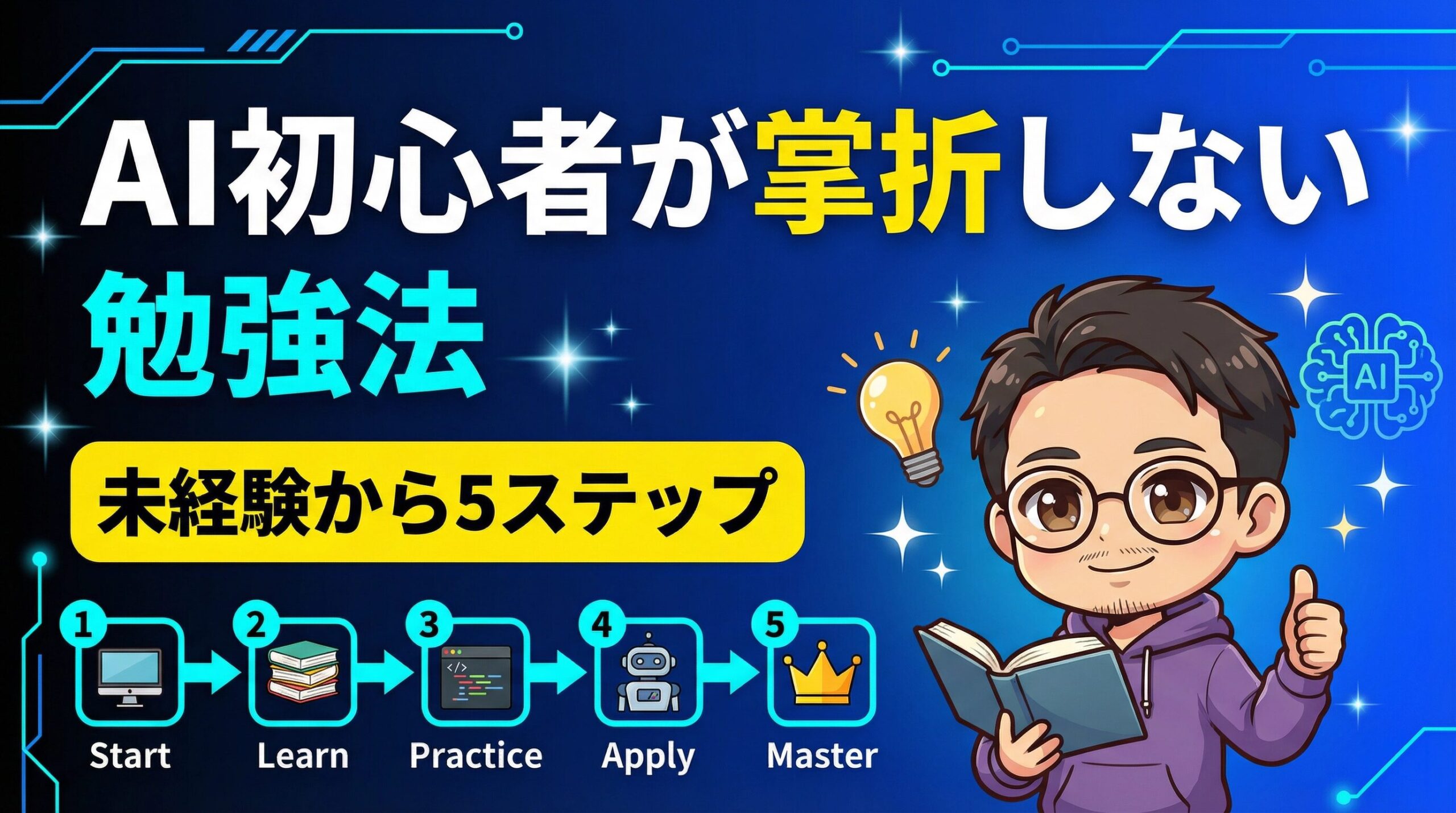 今回は、文系・非エンジニアだった僕がAI初心者の頃に知りたかった勉強法を、5つのステップでお伝えします。