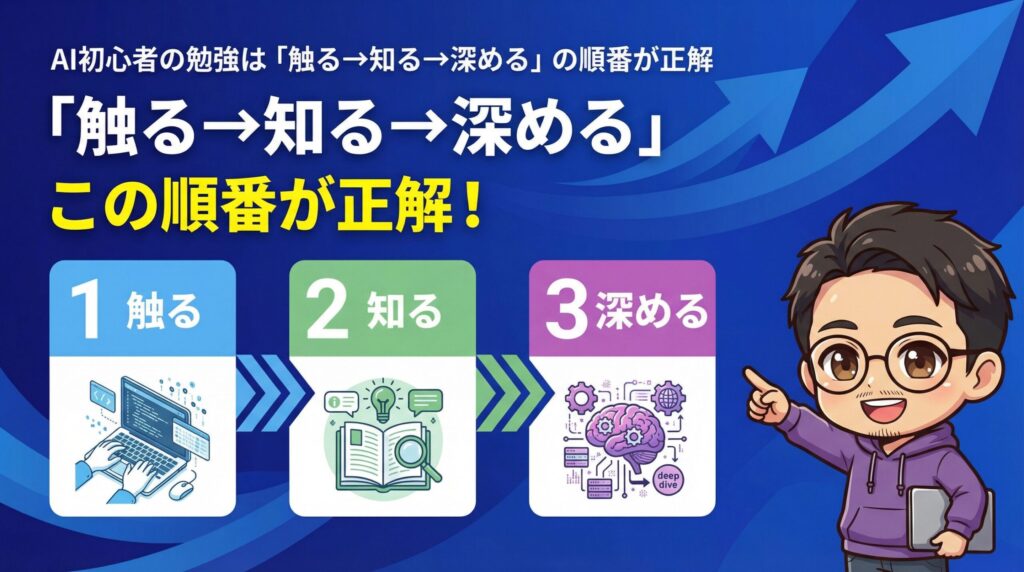 ✅ AIの勉強は「触る→知る→深める」の順番で進める