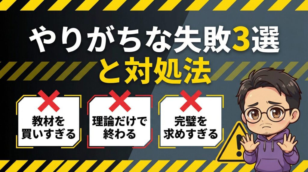 対処法: 教材は1つだけ選んで、まず最後までやり切る。比較は後でいい。