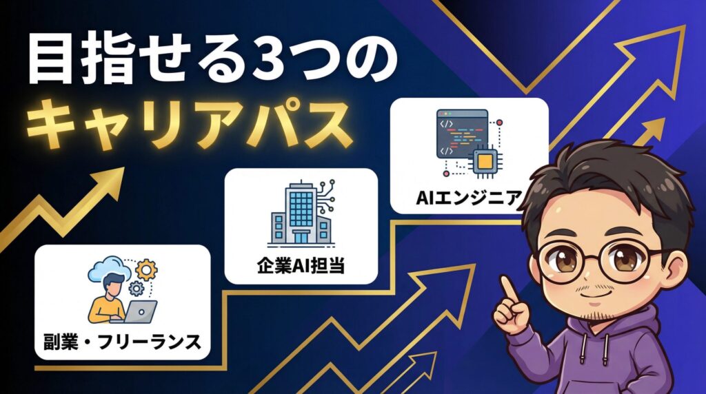 どのパスを選んでも、AI初心者として勉強を始めた時点で、すでに一歩リードしています。 大事なのは、完璧な計画より、まず動き出すことですよ!